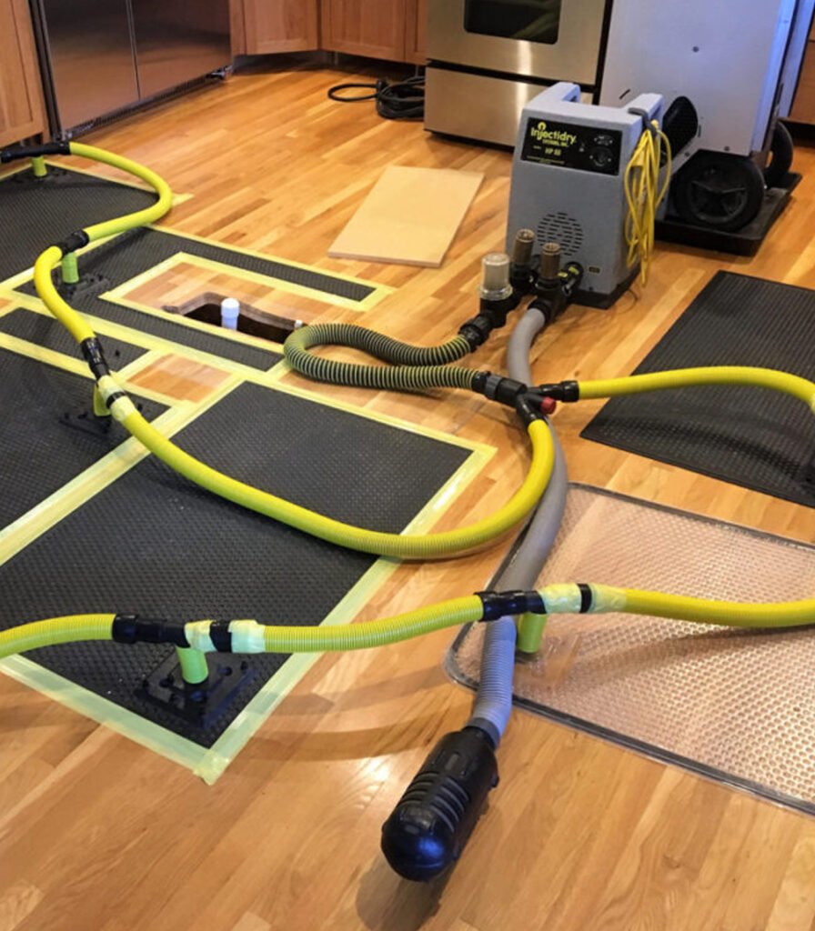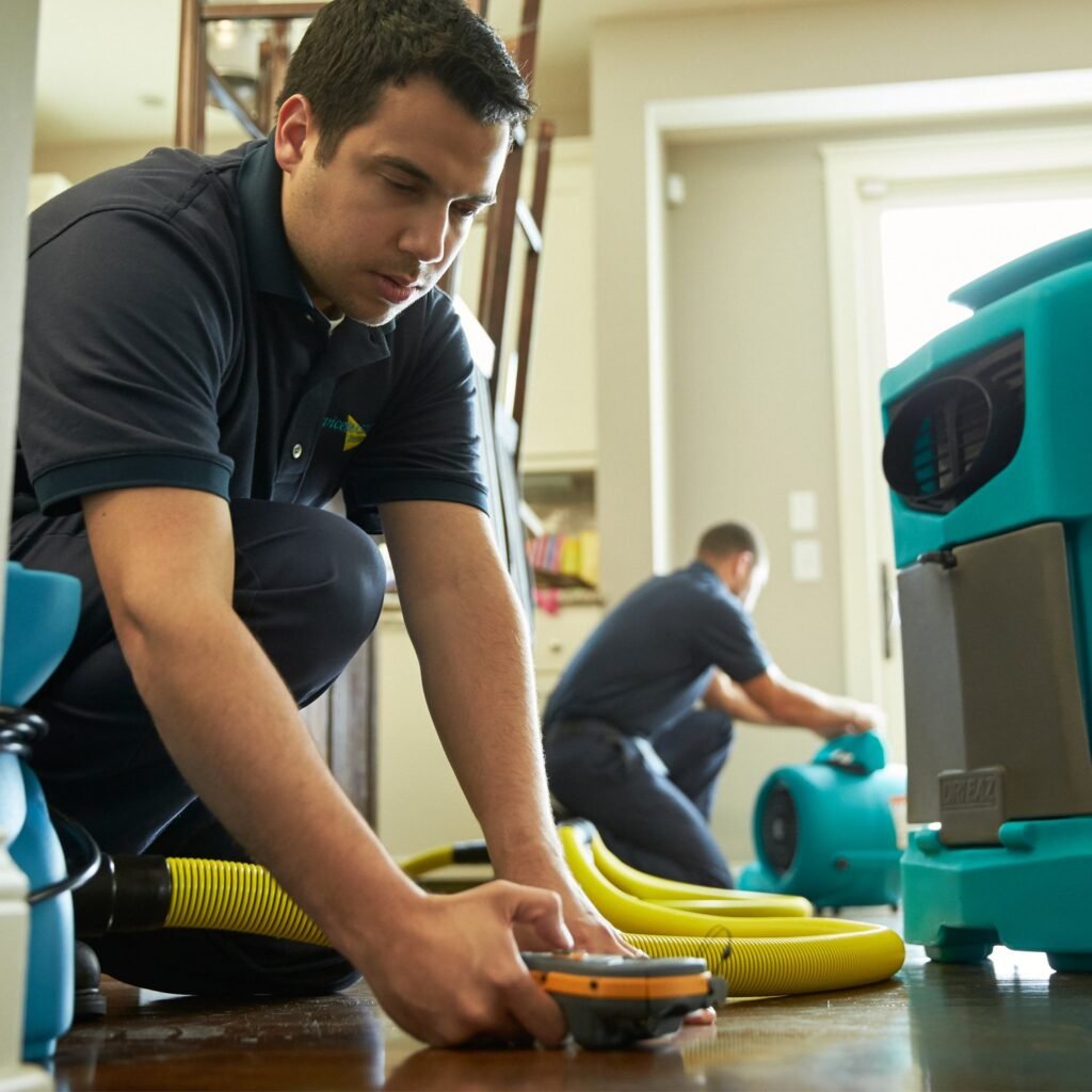 Our team places commercial-grade air movers and dehumidifiers to pull moisture from flooring, drywall, subfloors, cabinets, and hidden spaces. We monitor moisture levels daily until everything reaches safe, industry-approved standards.